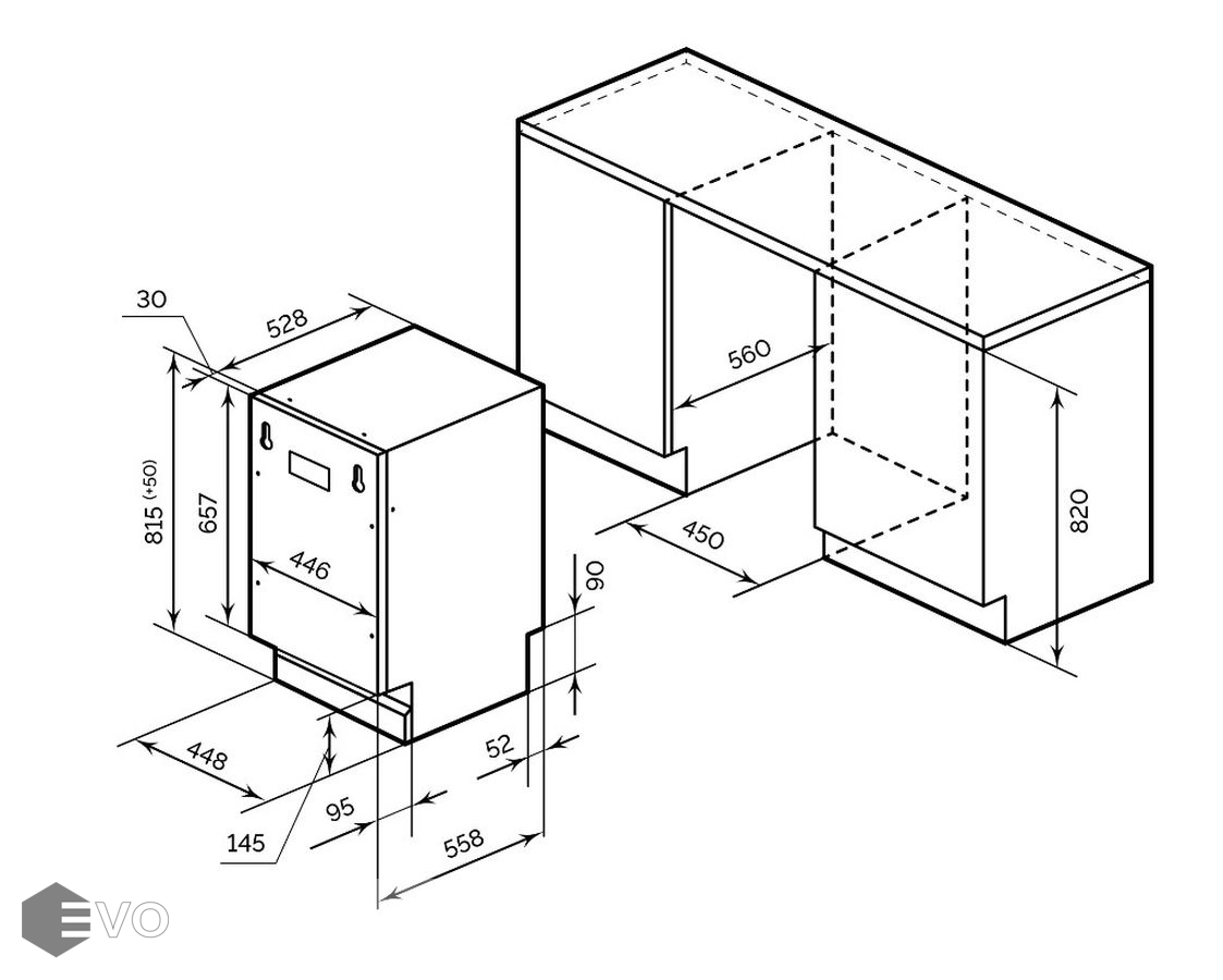 Размеры встраивания (ВхШхГ), мм: | 820х450х560 |
