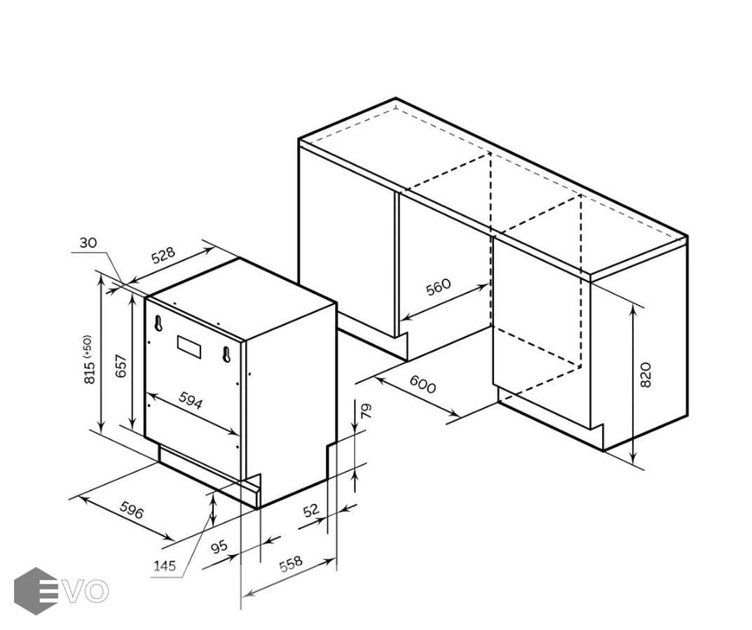 Размеры встраивания (ВхШхГ), мм: | 820x600x560 мм |