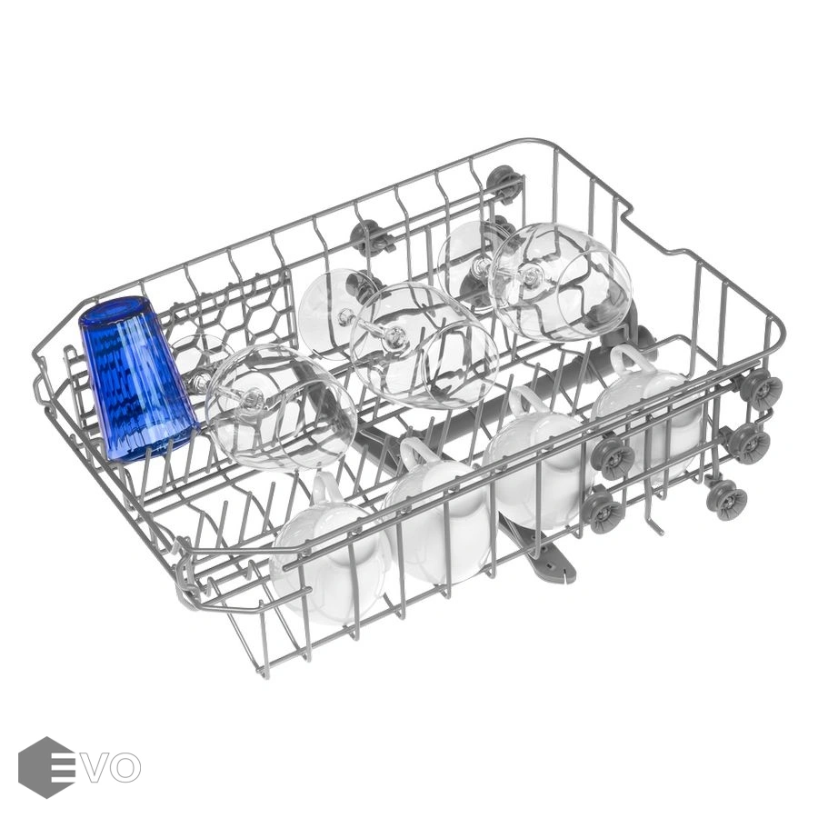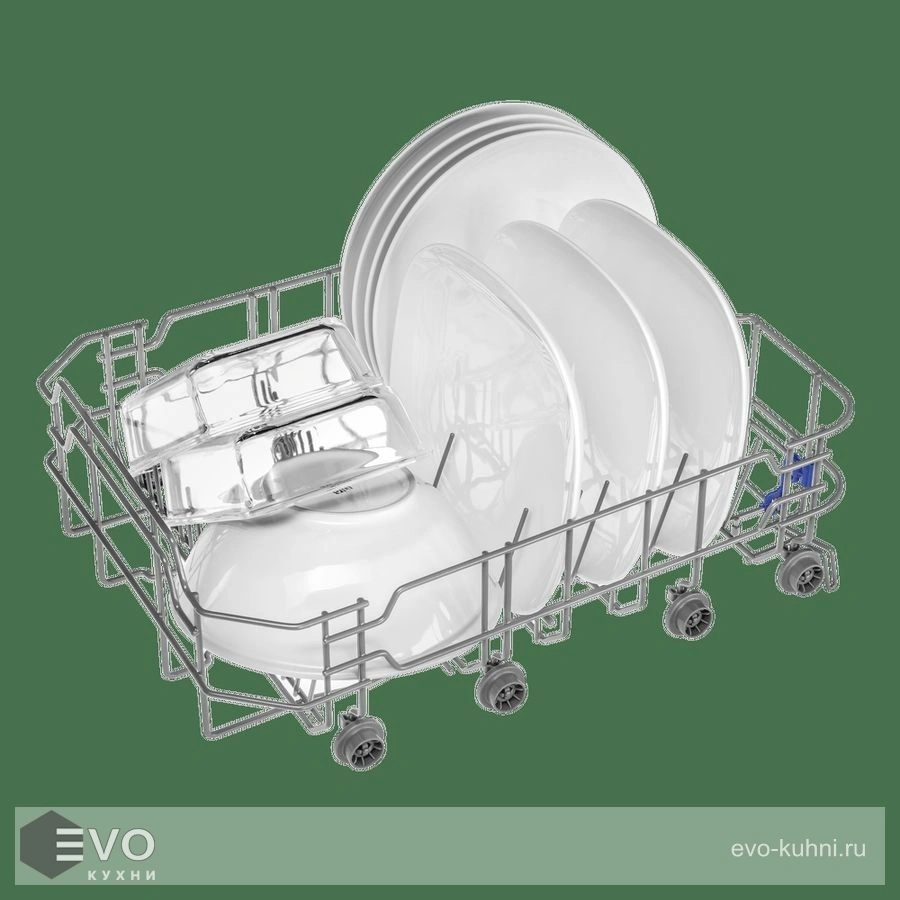 В машине максимально эффективно организовано внутреннее пространство. Есть удобная корзина для столовых приборов и мелкой утвари. Верхняя корзина — с изменяемой высотой установки, чтобы можно было мыть посуду разного размера и объёмов. В верхней корзине есть складные держатели для бокалов — дополнительное важное удобство.