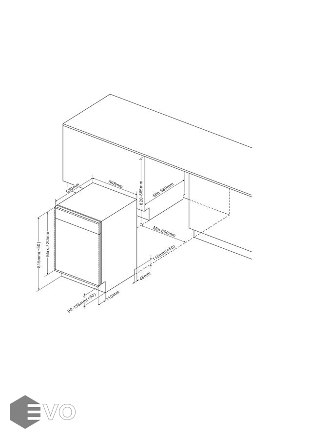 - Размер ниши для встраивания (ВхШхГ), мм 820х600х580
