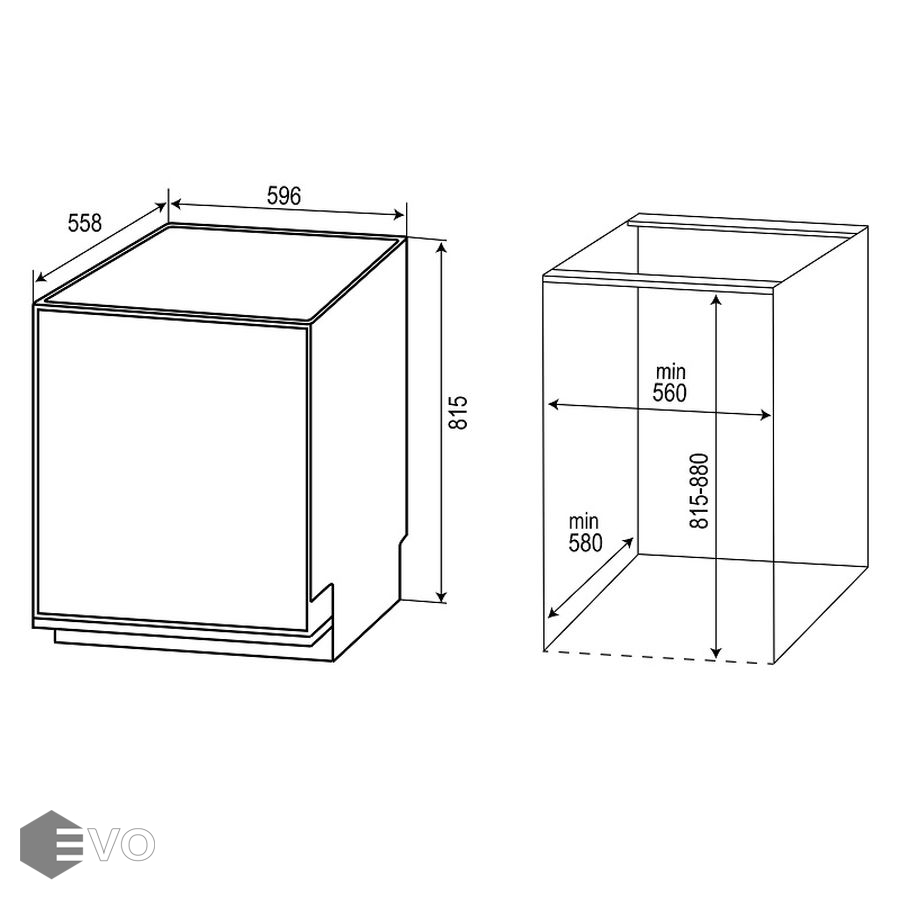 Размеры встраивания (ВхШхГ), мм: 815-880х580х560