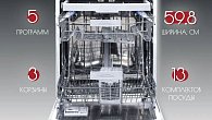 - Количество программ: 5 - Эко (222 минуты) - Авто (135 минут) - Супер 50 (50 минут) - Быстрая (30 минут) - Предварительная (15 минут)