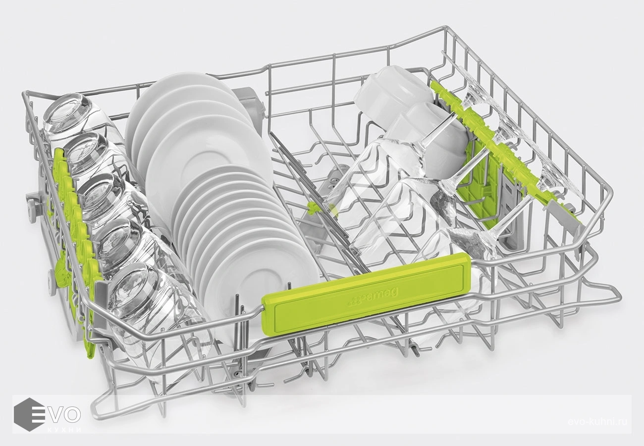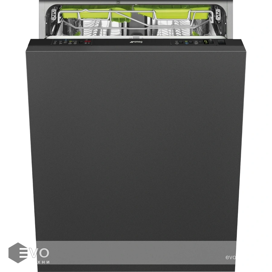 Посудомоечная машина Smeg ST 65336 L – встраиваемая модель шириной 60 см, рассчитанная на загрузку 13 полных комплектов. В меню предложено 10 рабочих режимов, можно отложить включение, выбрать температуру и с помощью опции FlexiZone выбрать половинную загрузку. Верхнюю корзину можно регулировать по высоте, наполнение корзин продумано до мелочей – отделение для столовых приборов, держатели для стекла, в нижнюю корзину удобно складывать крупногабаритную посуду. Прибор можно подключить к горячему водоснабжению, встроены фильтры очистки и смягчения воды. Орбитальная система разбрызгивания воды позволяет отмыть любую посуду до идеального блеска. Об окончании работы сообщит изменение цвета луча, спроектированного на пол.