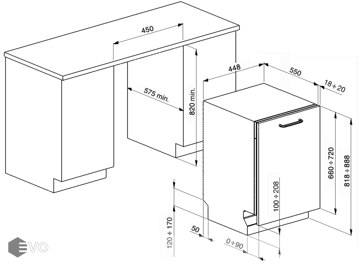 Размеры встраивания (ВхШхГ), мм: 820х450х575