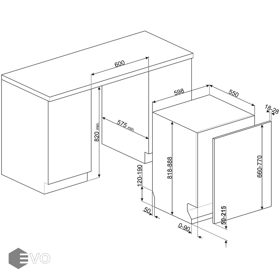Размеры встраивания (ВхШхГ), мм: 820х600х575