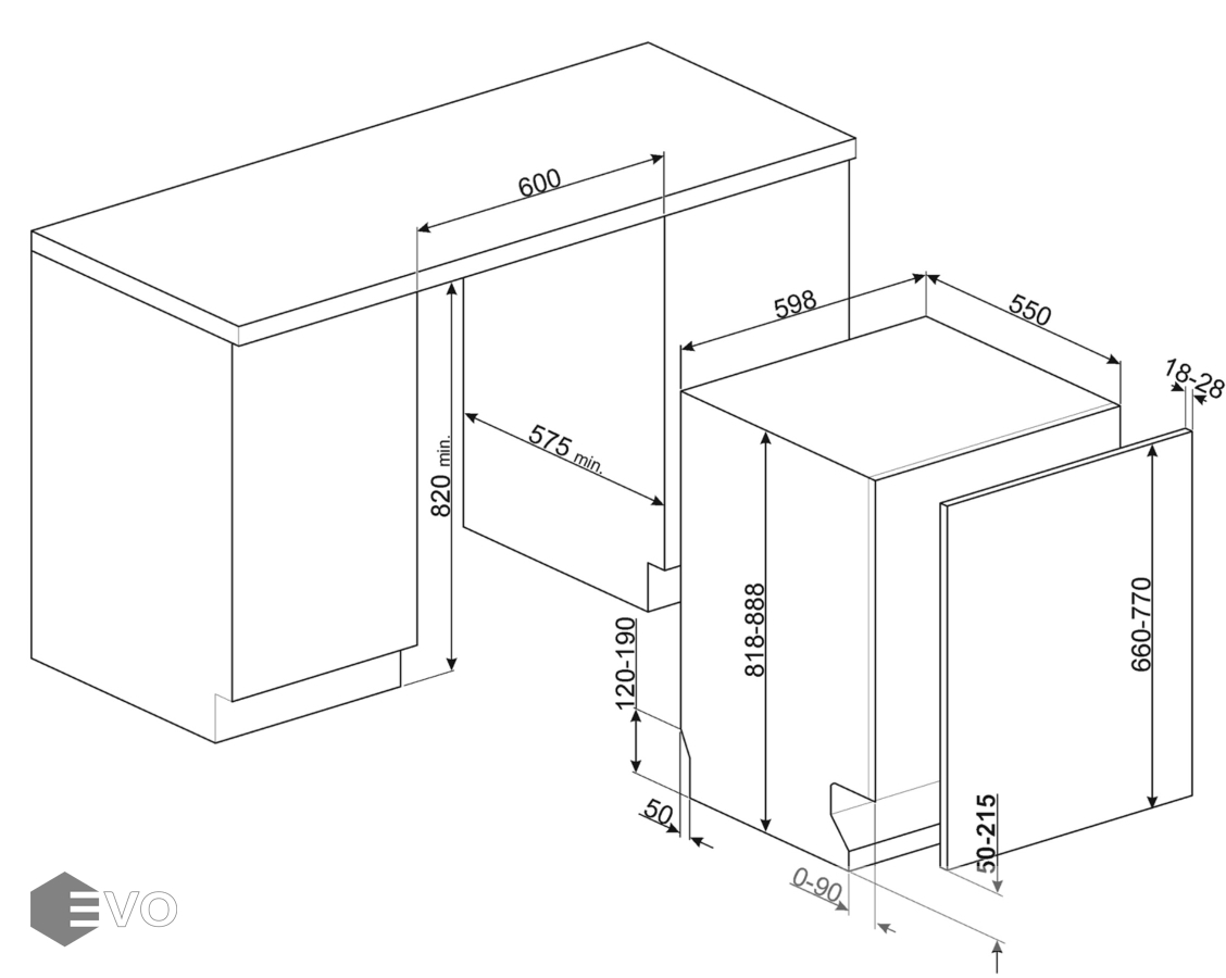 Размеры встраивания (ВхШхГ), мм: 820х600х575