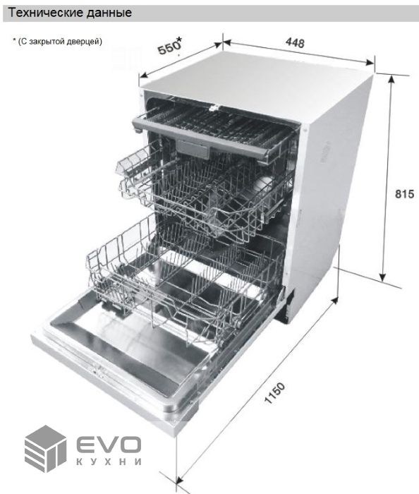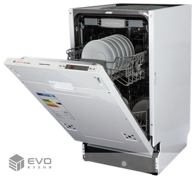 При ширине 45 см, полностью встраиваемая посудомоечная машина Zigmund Shtain DW 129.4509 X справляется с мытьем 10 комплектов посуды. Один комплект посуды состоит из 3 тарелок (суповой, десертной и тарелки для второго блюда), бокала, чашки, блюдца, 3 ложки (столовая, десертная, чайная), нож, вилка. В арсенале этой модели 9 программы мойки, среди которых имеется авто-программа, которая самостоятельно выбирает все необходимые параметры мойки, в зависимости от количества и степени загрязненности посуды, а работающий при этом аква-сенсор отслеживает чистоту воды в машине и контролирует время мойки, необходимое для отличного результата. Функция ½ загрузки в данной модели работает в 3 режимах: с помощью кнопки можно выбрать один из трёх, при этом посуда может находиться в верхнем или нижнем коробе, или же в обоих коробах. Функция "Луч на полу" проецирует световой индикатор на пол во время выполнения программы и отключает его по завершению процесса мойки — теперь мы можем наблюдать за процессом работы! . Индикация нехватки соли и ополаскивателя даст вовремя знать о том, что эти компоненты необходимо добавить. Отложенный старт позволит запустить мойку позже ( до 24 часов), если к примеру, ночные тарифы ниже, что позволит Вам получить чистую посуду, затратив при этом меньше денег. Внутреннее LED освещение поможет Вам оценить качество мытья посуды не вынимая её, сразу после мойки. При необходимости имеется возможность дозагрузки посуды после запуска. Ширина посудомоечной машины составляет 45 см, что позволит установить её в кухнях стандартных размеров. Модель оснащена полной защитой от протечек.
