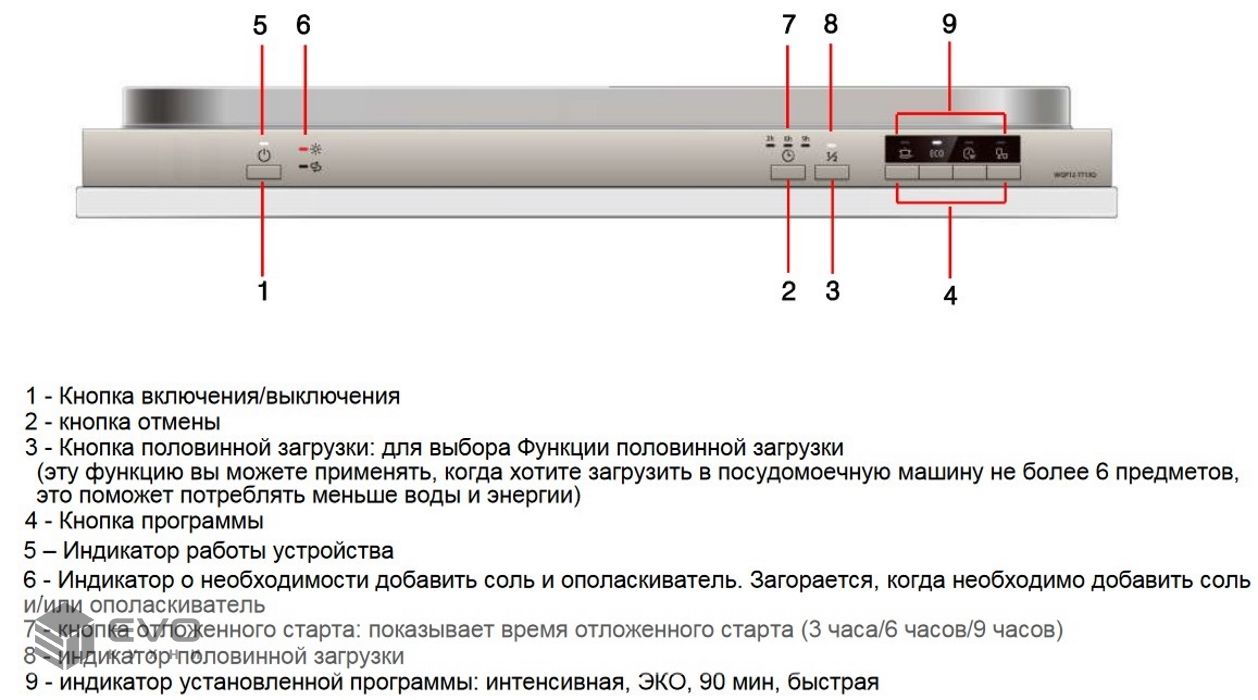 Функции : | Быстрая мойка Дисплей Защита от детей Защита от протечек Звуковой сигнал Интенсивная мойка Отсрочка запуска Отсрочка старта Регулировка верхней корзины Таймер отрочки запуска |