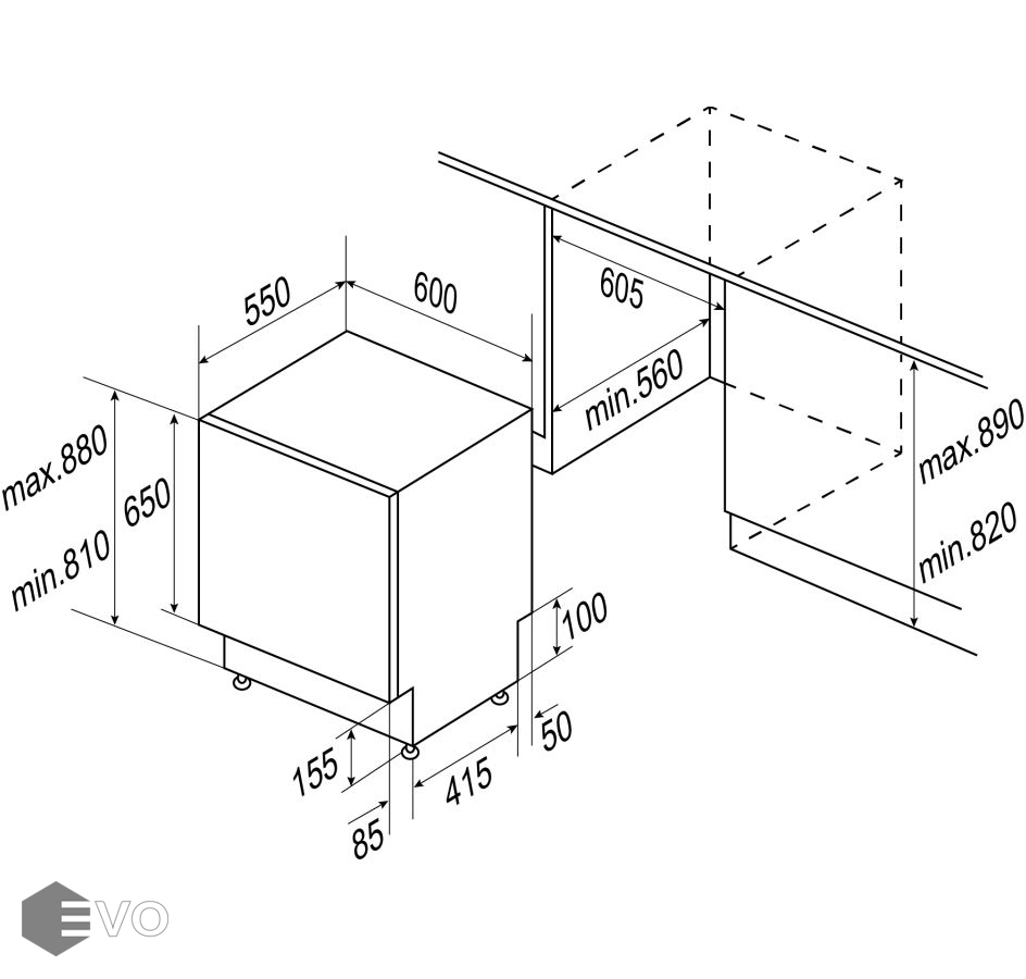 Размеры встраивания (ВхШхГ), мм: | 820х605х560 |