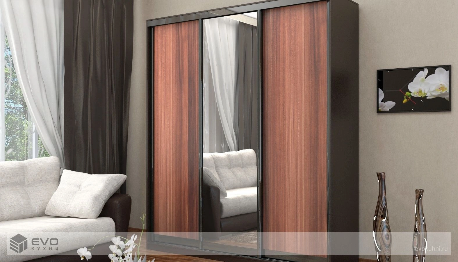 Шкаф-купе 3 двери ЛДСП с зеркалом