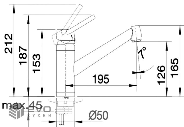 Длина излива | 195 мм |