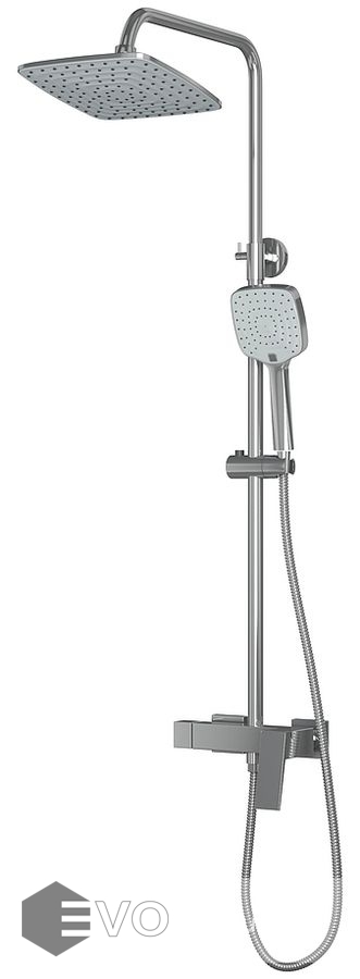 Комплектация: Душевая лейка, Тропический душ, Раздвижная душевая штанга, Поворотный держатель душевой лейки, Шланг, Смеситель, Переключатель с керамическими пластинами.