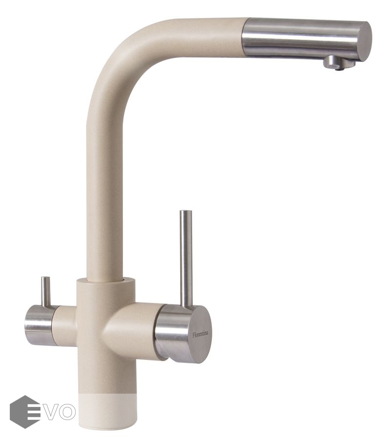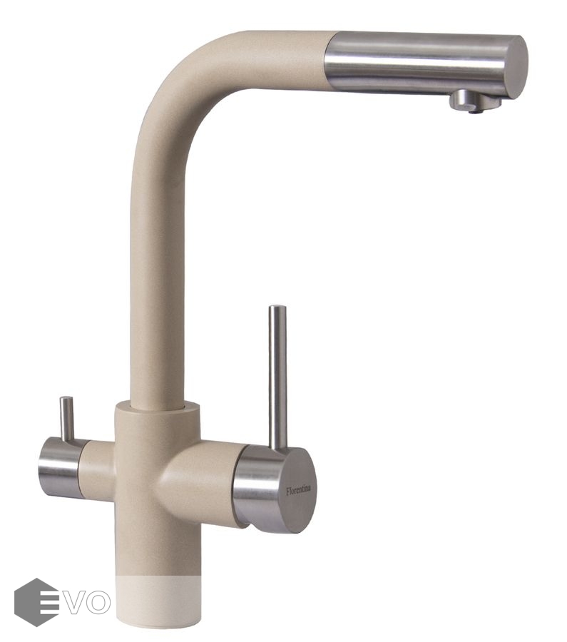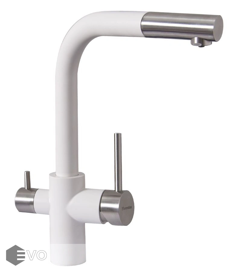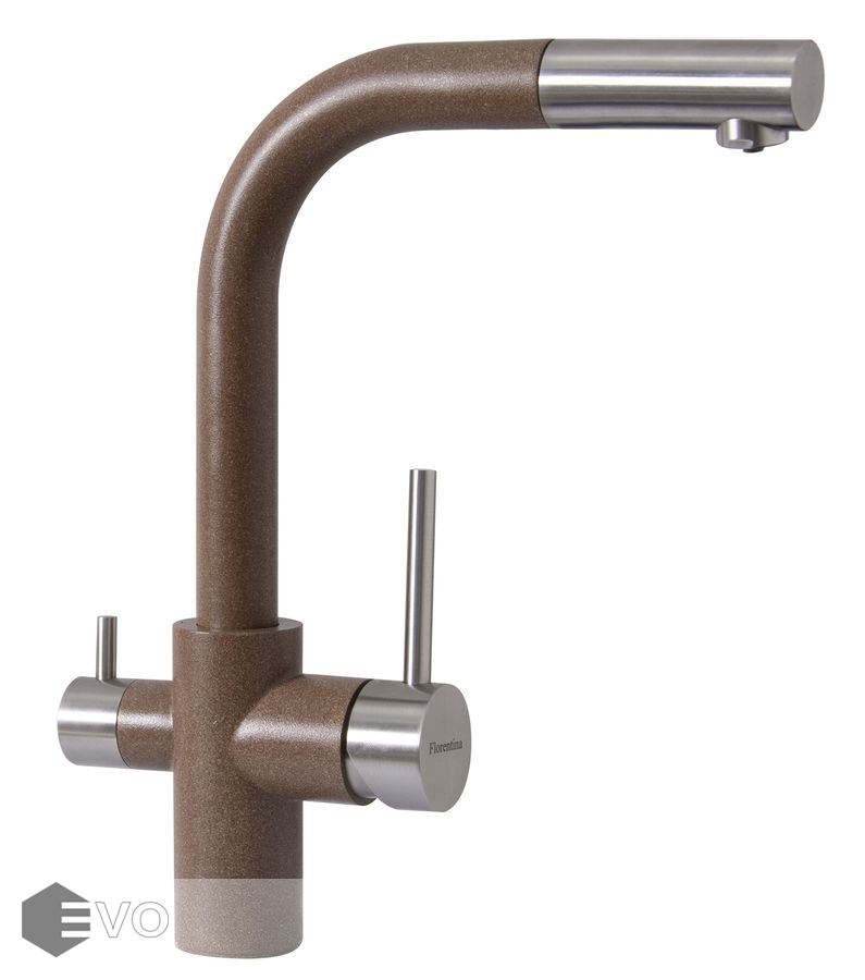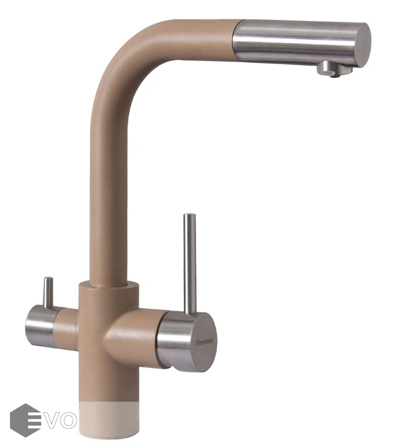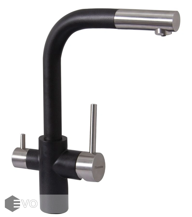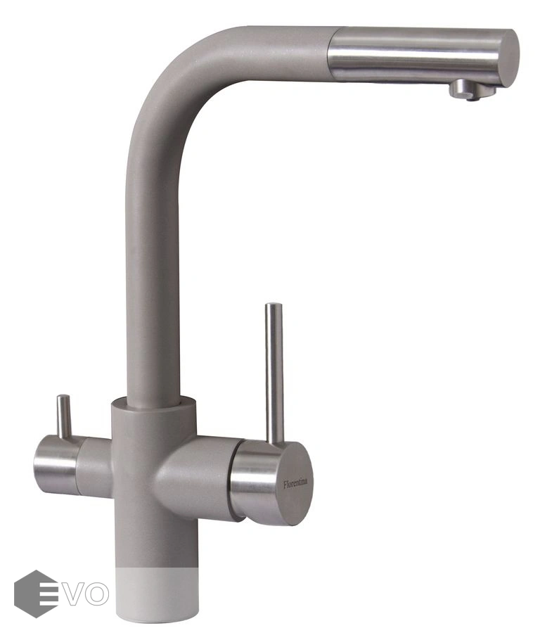 Модель три в одном – подключение к фильтру, выдвижной душ, стандартная регулировка подачи воды.