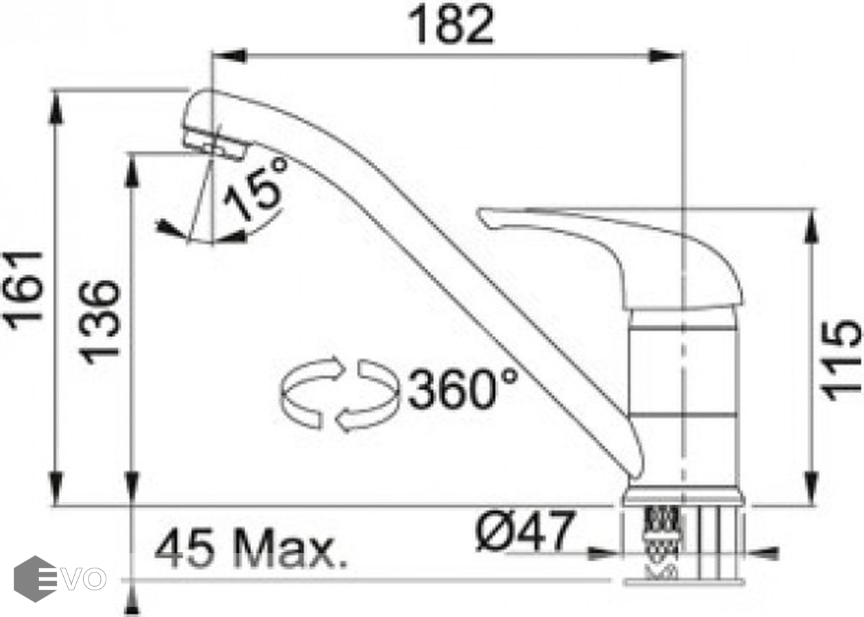 Особенностями модели являются высокий поворотный излив, однорычажное управление и наличие стабилизирующей пластины.