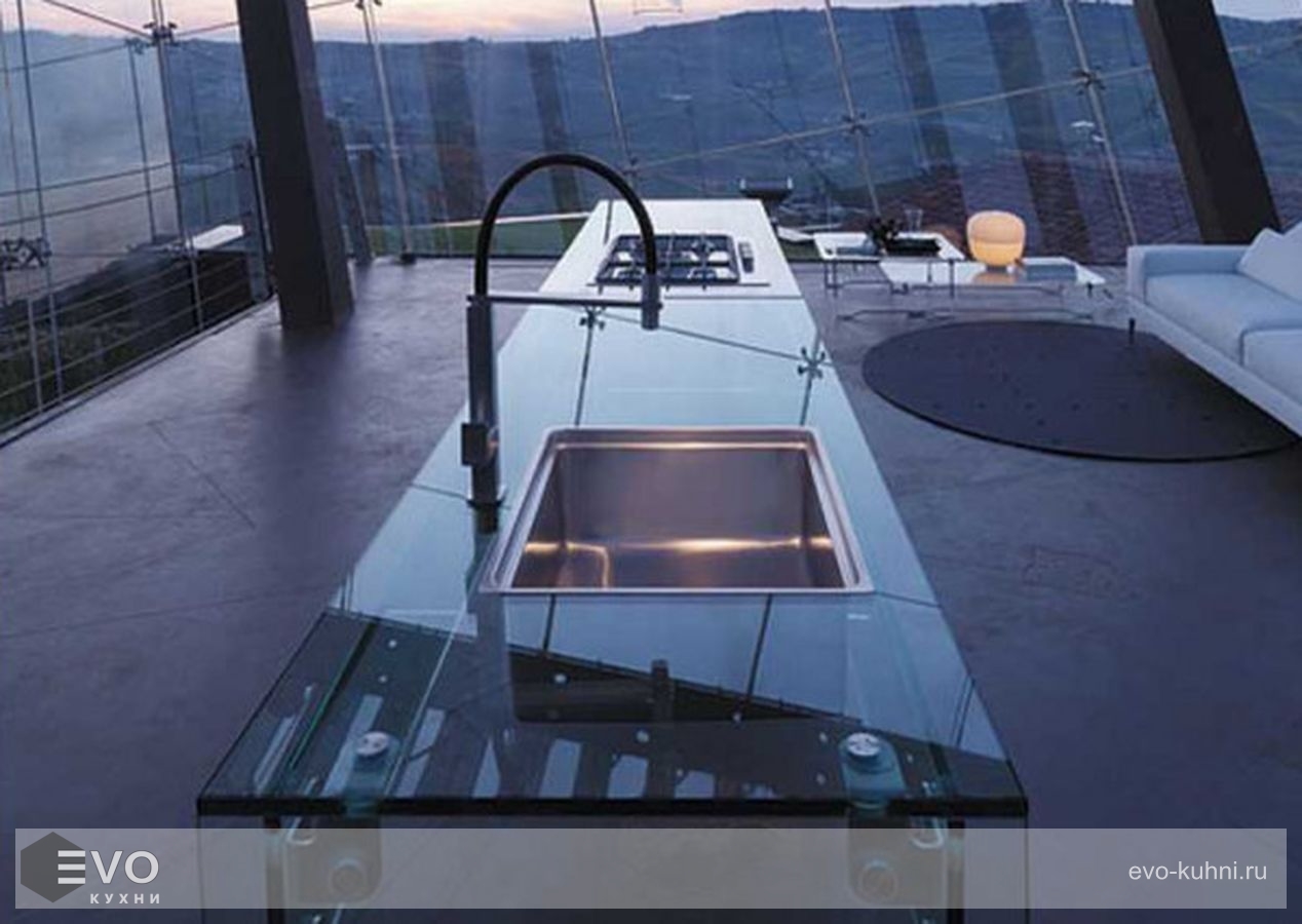 Смеситель с боковым управлением в виде рычага отлично сочетается с мойками больших габаритов.