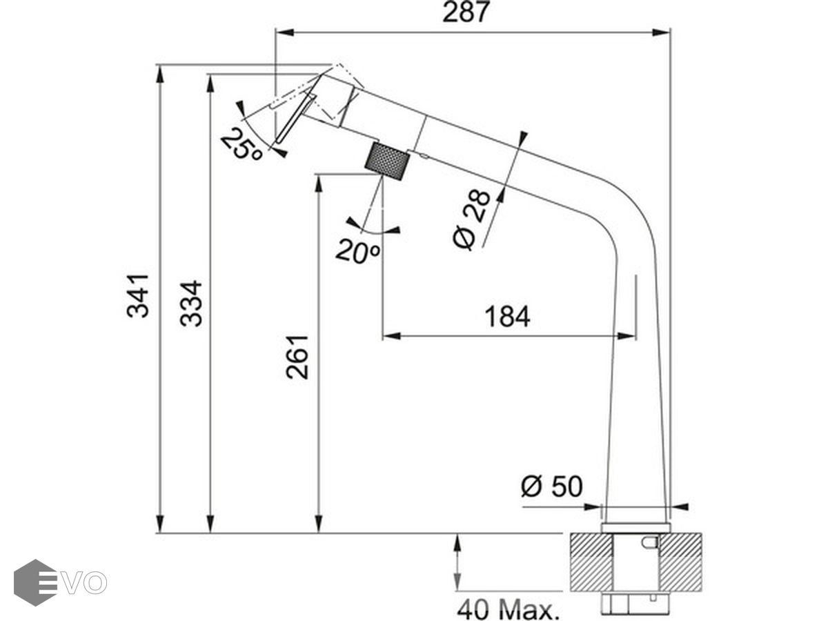 | Высота излива: | 261 мм |