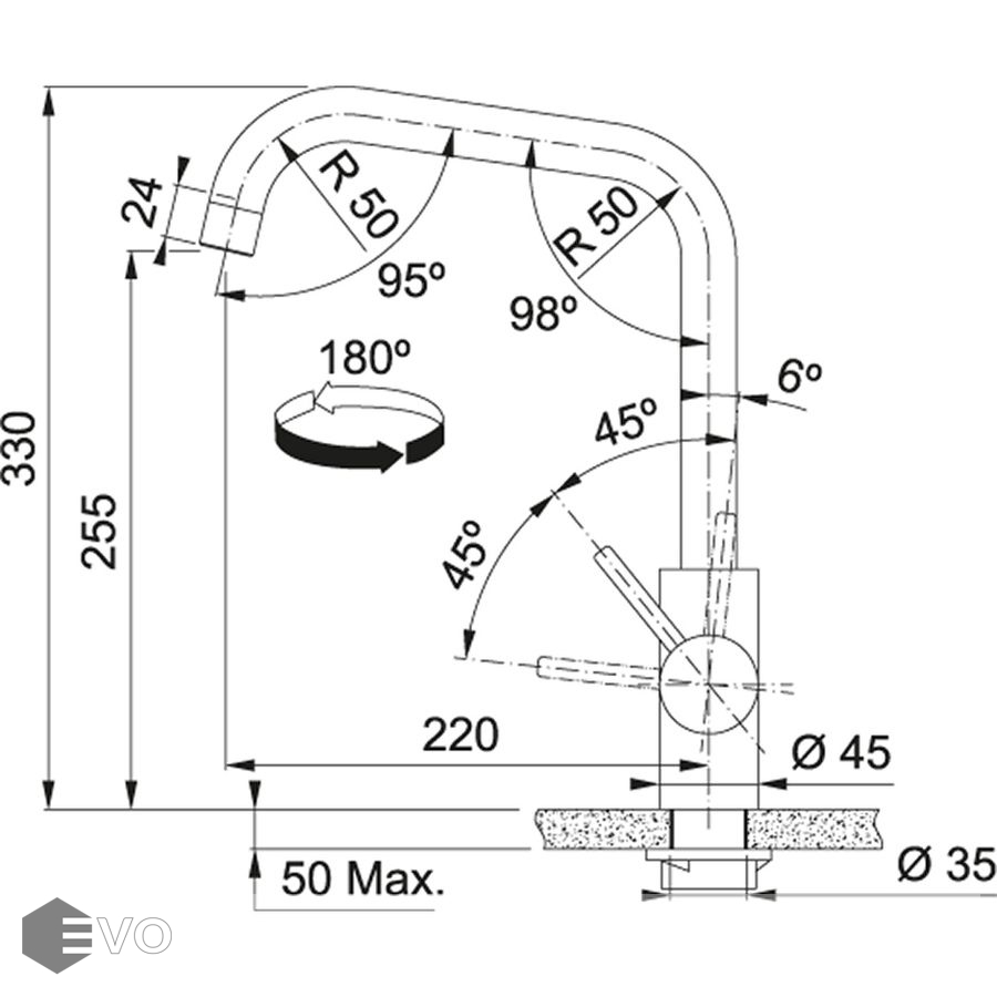 | Высота излива: | 220 мм |