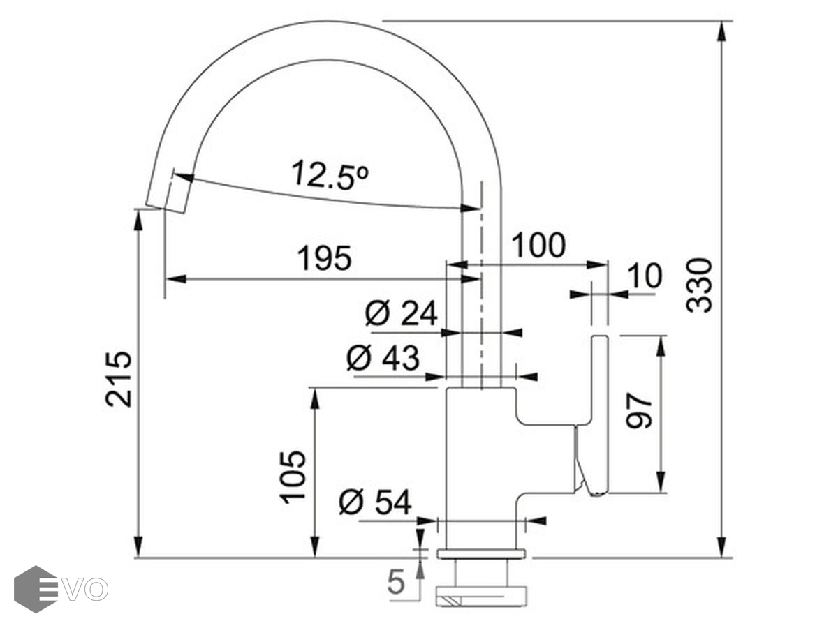 - Высота смесителя 330 мм