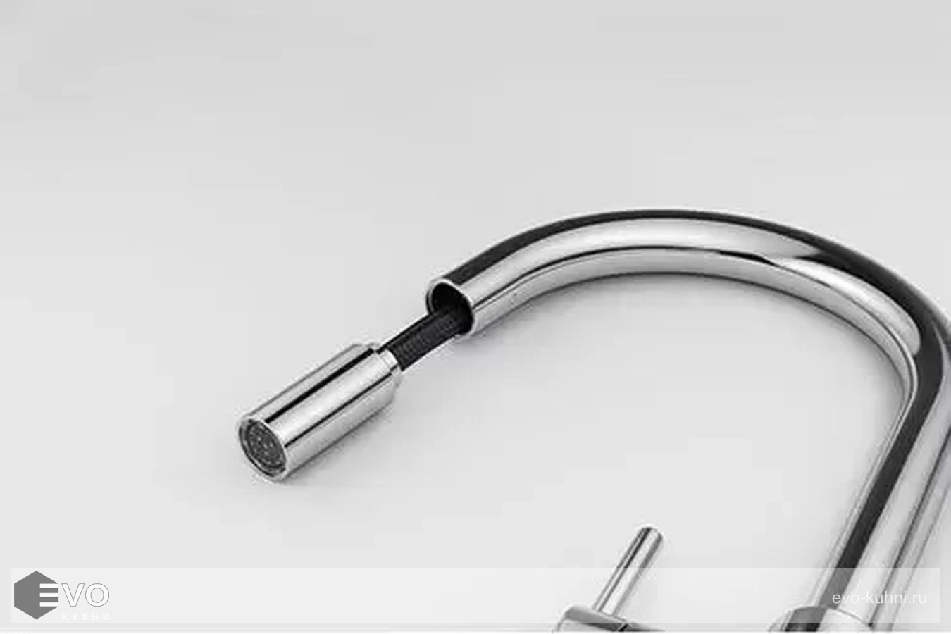 Жесткая подводка, хоть и недостаточно вариативная в расположении, имеет ряд преимуществ: долго служит, мало подвержена коррозии, проста в обслуживании, хорошо выдерживает перепады напора и температуры. Специальная насадка позволяет выдвинуть излив как маленький шланг и направить струю в слишком высокую кастрюлю, которая не помещается под стационарным краном, на овощи в раковине, на загрязнения в неудобных уголках мойки, которые нужно удалить и т.д.