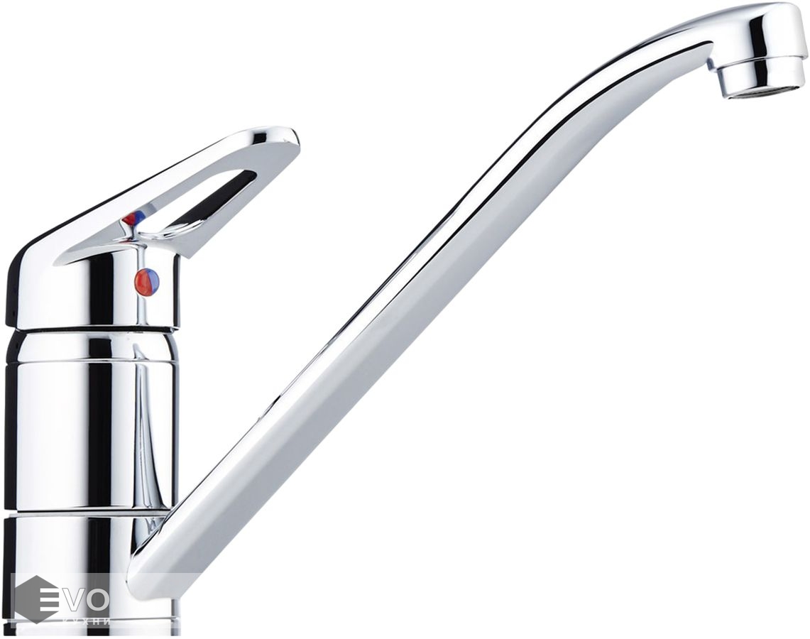 Смеситель хромового цвета принадлежит к линейке рычажных моделей оборудованию с легким и комфортным управлением. Регулировка напора и температуры воды производится при помощи рычага, установленного в верхней части корпуса. Кран управляется одной рукой, что является важным аспектом в кухонных условиях, когда хозяйке постоянно приходится выполнять несколько задач одновременно.
