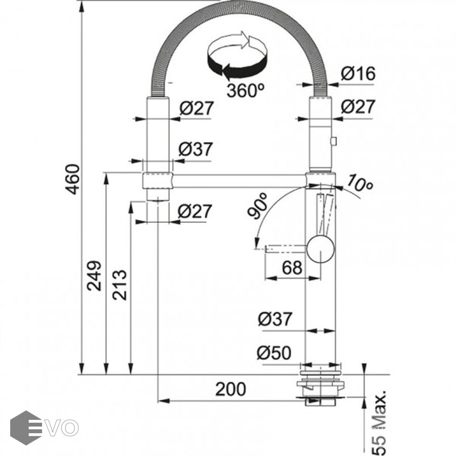 Высота излива: 213 мм