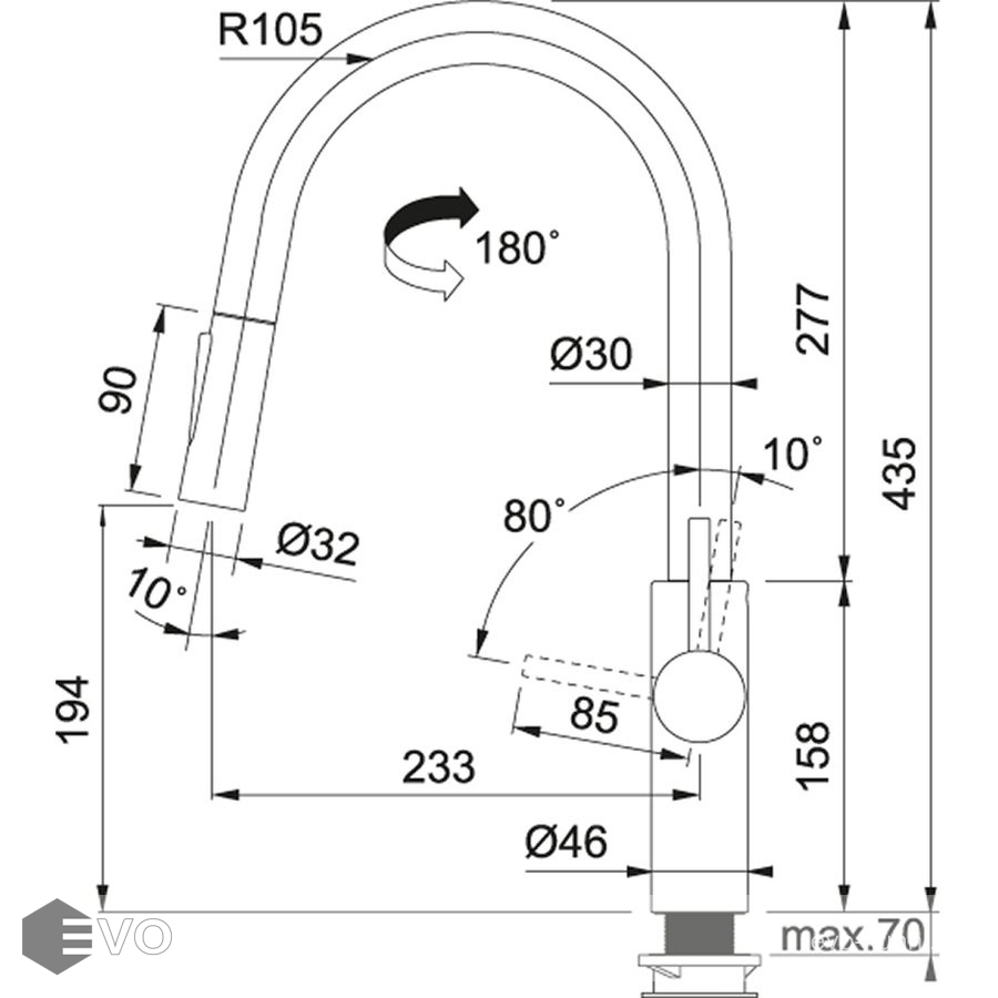 | Высота излива: | 194 мм |