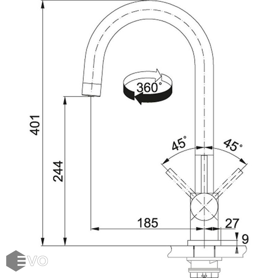 - Высота смесителя: 401 мм