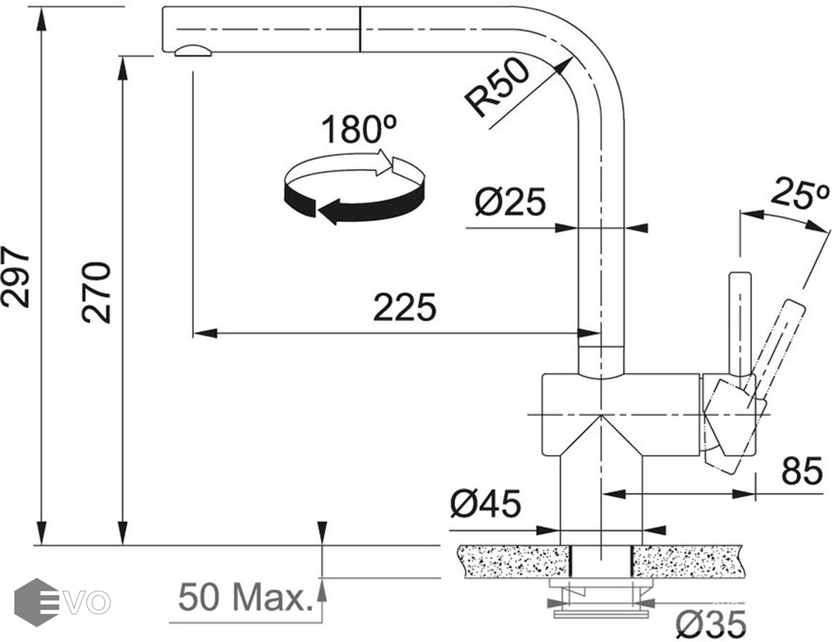 | Длина излива: | 225 мм |