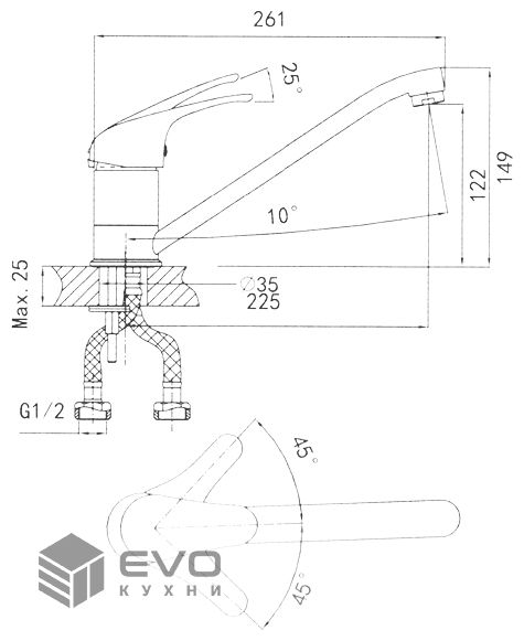 - Тип смесителя: однорычажный