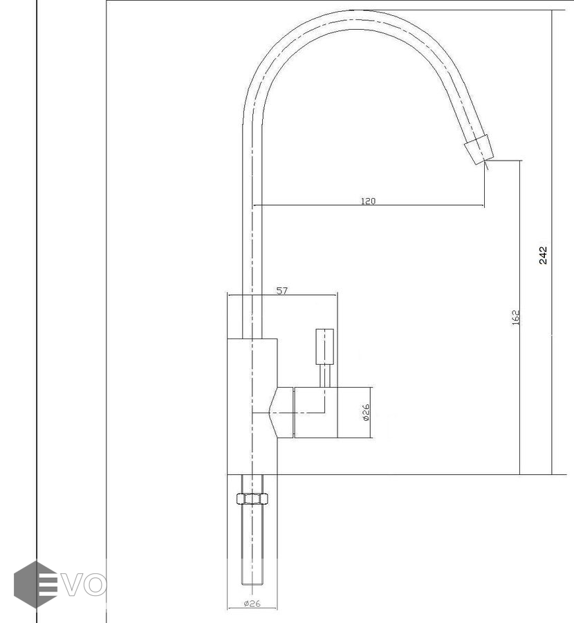 - Высота смесителя: 242 мм