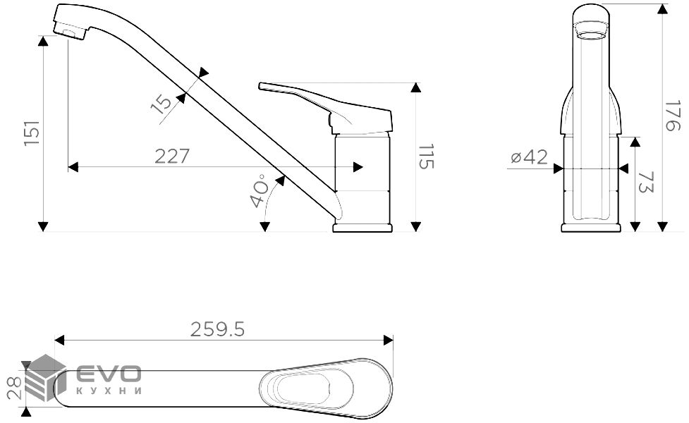 | Длина излива | 259.5 мм |