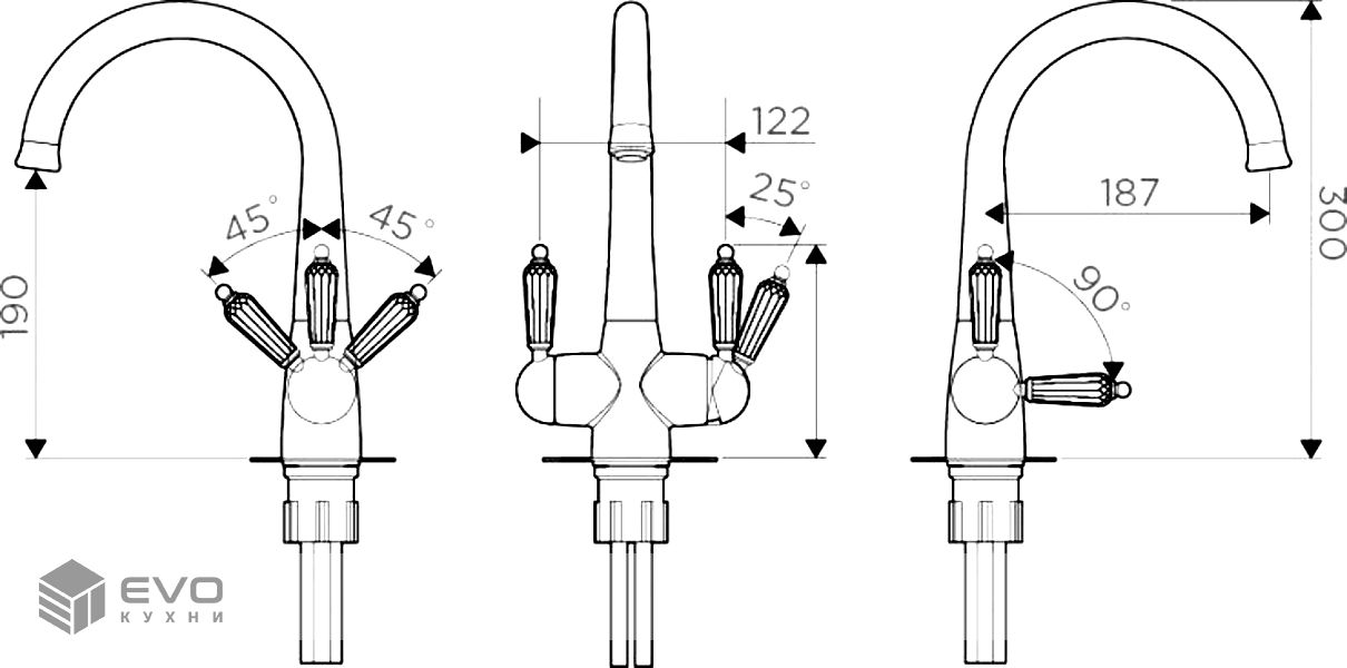 | Тип смесителя | Однорычажный с дополнительным краном для питьевой воды |
