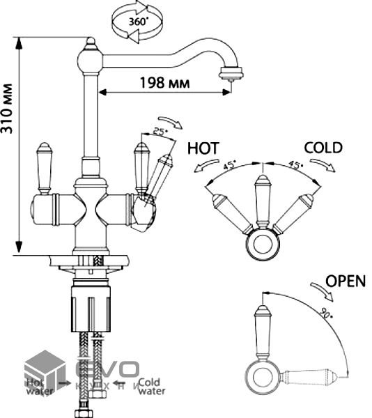 - Классический дизайн и удобство использования, благодаря высокому изливу;