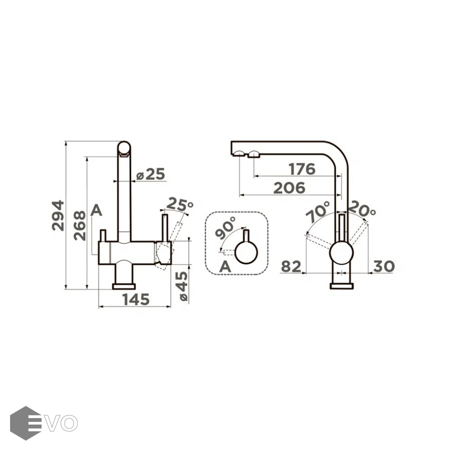 - Длина излива: 206 мм