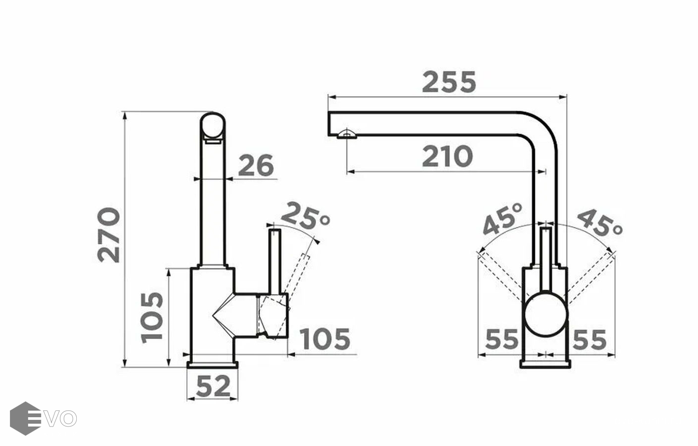 • Высота смесителя: 270 мм