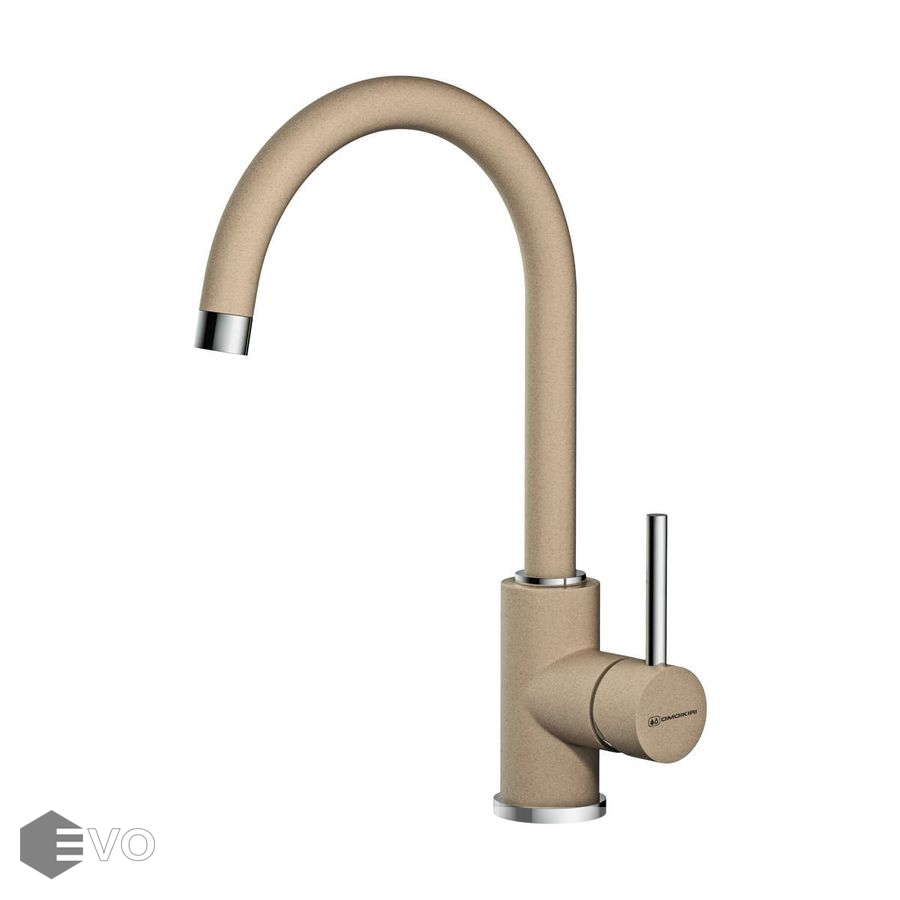 Практичный однорычажный смеситель Omoikiri Shinagawa-P-CA латунь/карамельвыполнен в современном стиле и снабжен высоким поворотным изливом.