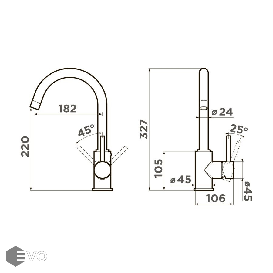 - Высота смесителя 327 мм