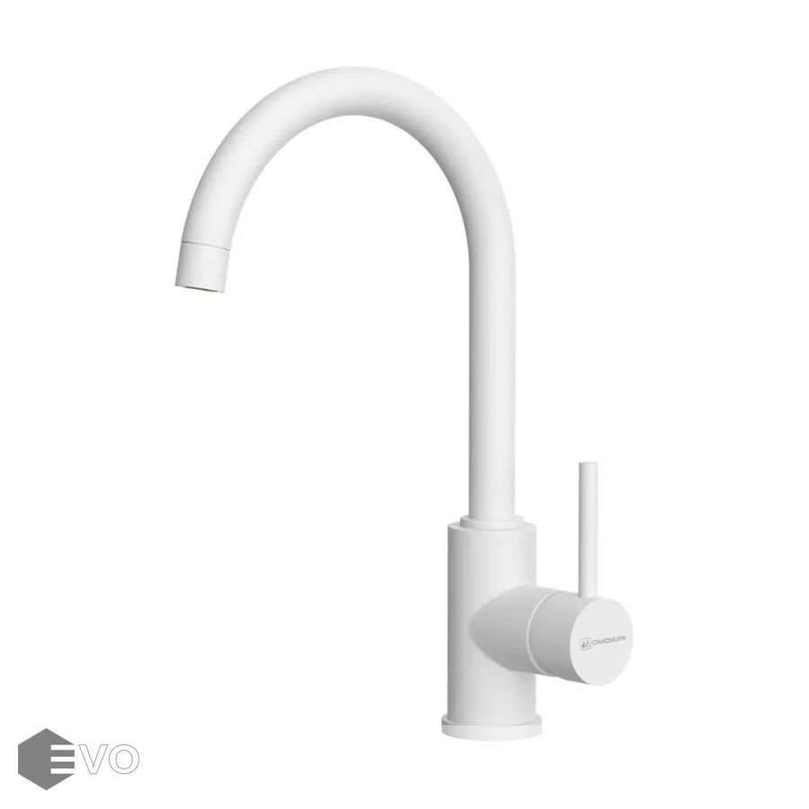 Практичный однорычажный смеситель Omoikiri Shinagawa-P-WH латунь/белый выполнен в современном стиле и снабжен высоким поворотным изливом.