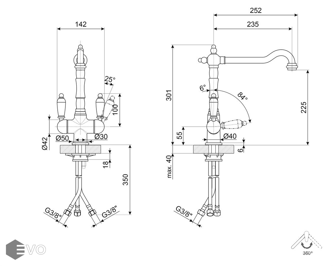 Конструкция прибора предусматривает возможность подачи питьевой воды для комфортного использования. Эргономичные рукояти с плавным ходом максимально точно настраивают напор и температуру. Встроенный аэратор улучшает качество струи, способствует выветриванию хлора.