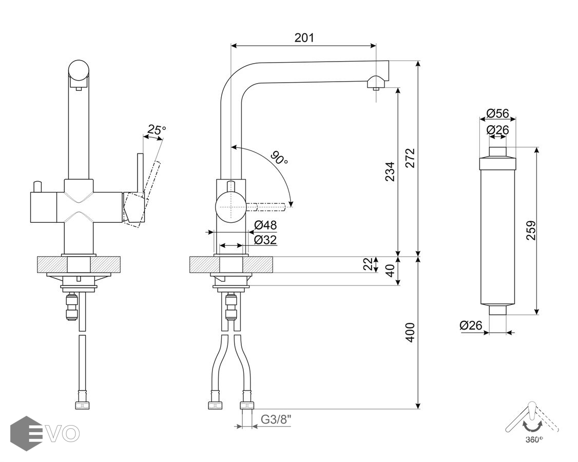 - Вид Однорычажный, с ручкой для подачи питьевой воды