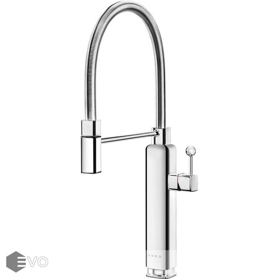 Однорычажный смеситель SMEG MDF50SS имеет хромированное покрытие.