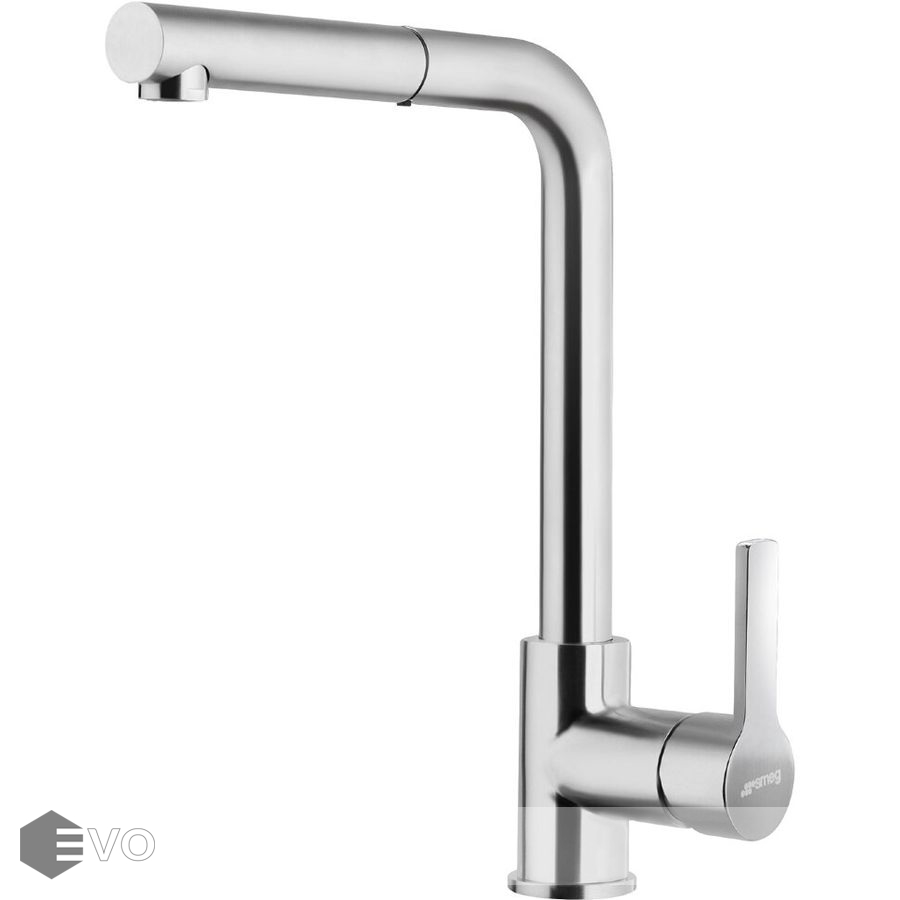 Однорычажный смеситель для кухни Smeg MID1NS цвета никель с поворотным изливом органично впишется с остальными приборами в современном интерьере.