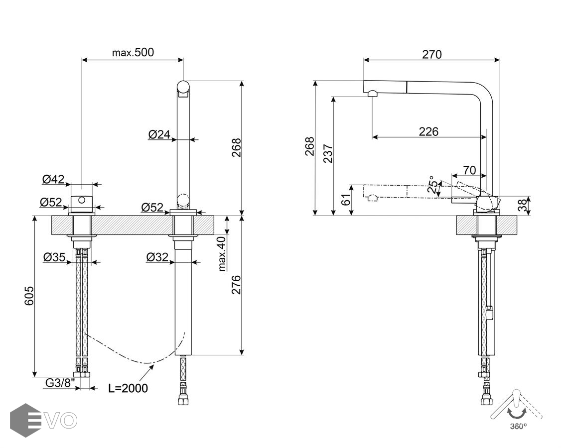 - Дистанционный однорычажный вентиль (размещение не далее 50 см от излива)