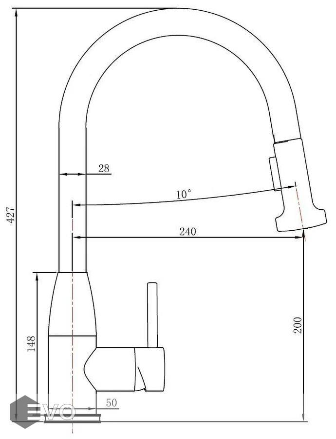 • Универсальный смеситель (подойдет к любой мойке) с поворотным изливом