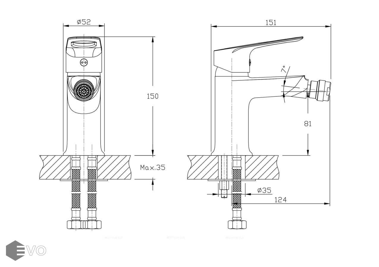 Смеситель для биде RUSH арт.ED7735-12 с металлической ручкой из коллекции Edge изготовлен из высококачественной латуни, имеет рычажное управление и традиционный излив.