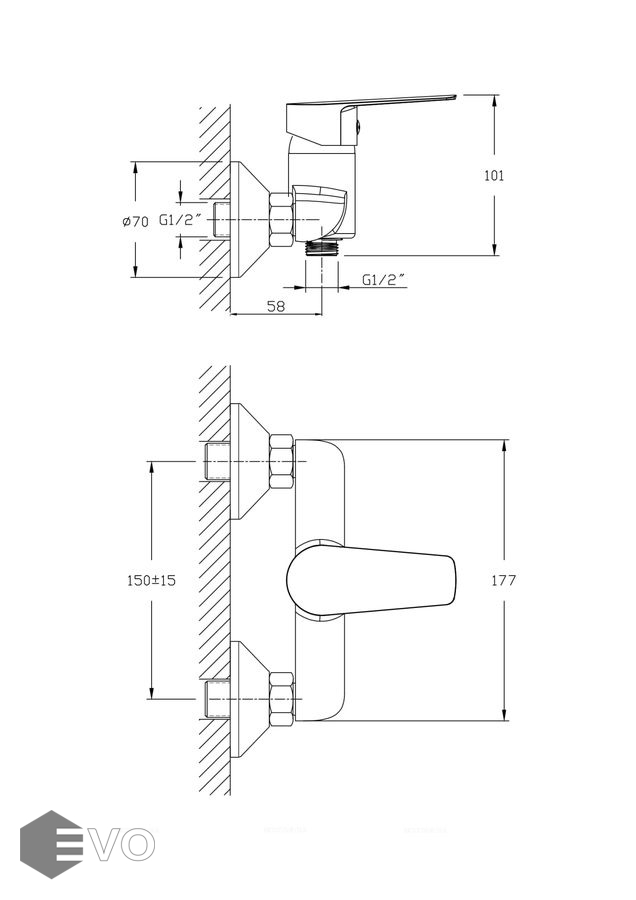 В смеситель установлен картридж с керамическими пластинами D-32 (RSH102). Жесткая подводка 1/2". В комплекте однорежимная душевая лейка и душевой шланг длиной 1, 5м, держать душевой лейки, латунные эксцентрики, фум-лента, индивидуальный пакет, паспорт, гарантийный талон.