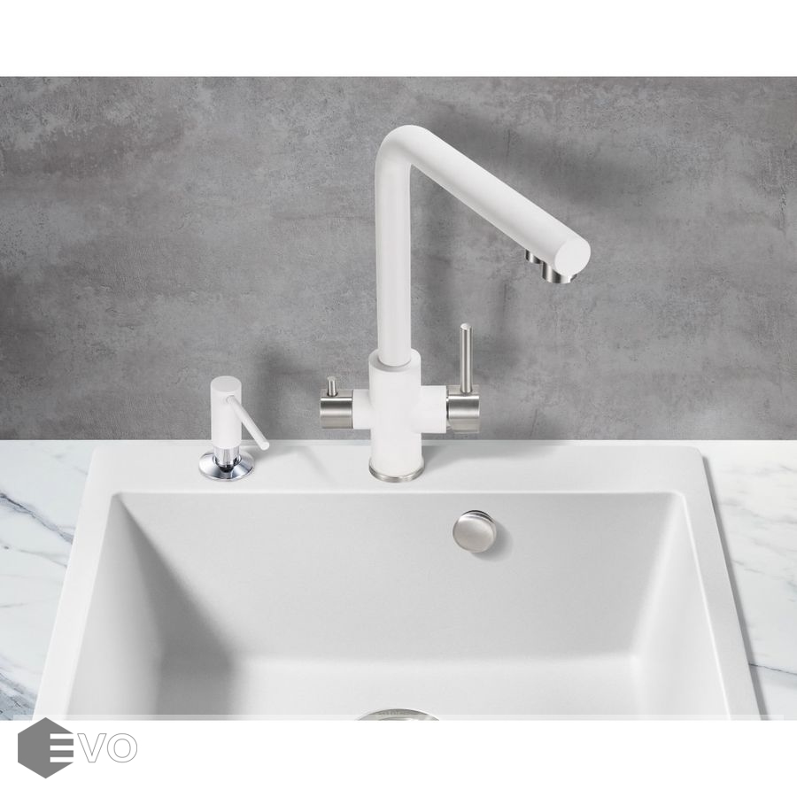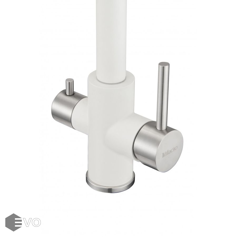 Смеситель для кухонной мойки Milacio Ultra (MCU.553.WH) из нержавеющей стали с нанесением лакокрасочного покрытия белого цвета, с возможностью подключения фильтра — стильное и инновационное решение для вашей кухни. Современный дизайн в сочетании с высочайшим качеством обеспечат изделию сохранение безупречного внешнего вида и функциональности на весь срок эксплуатации.