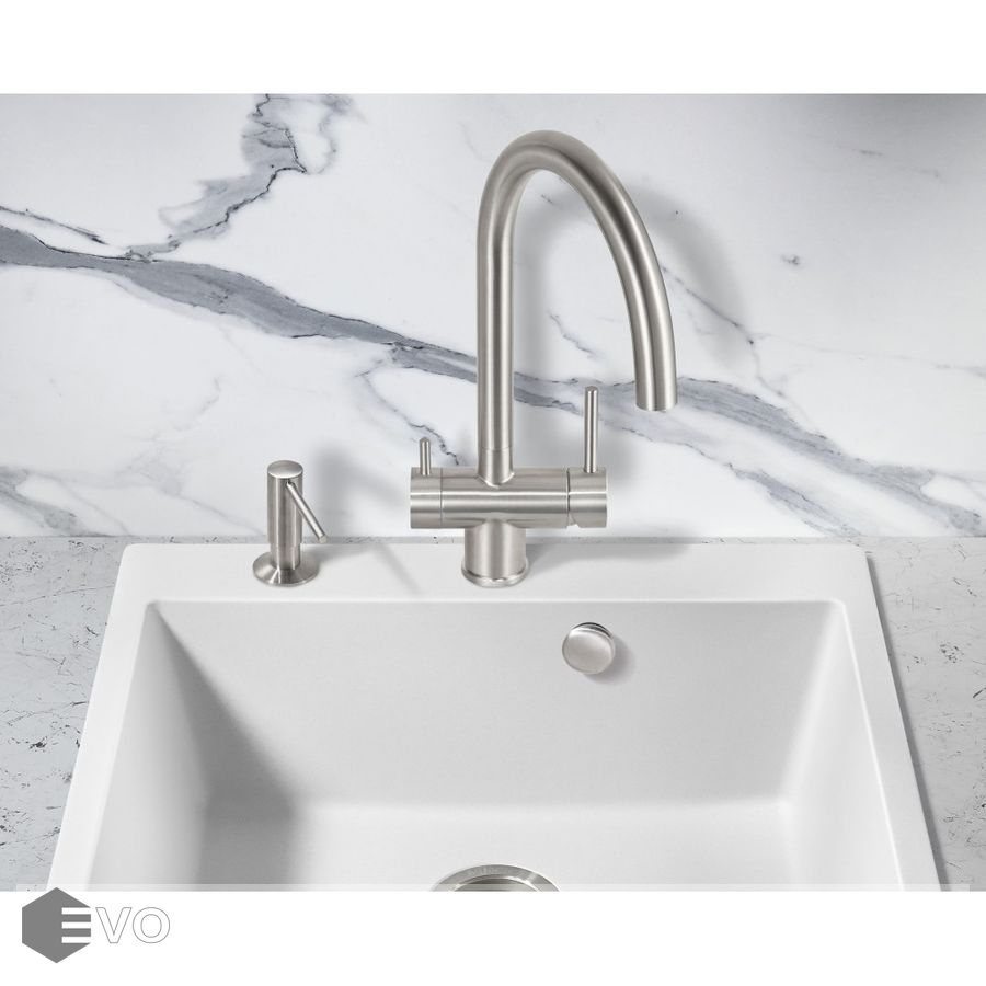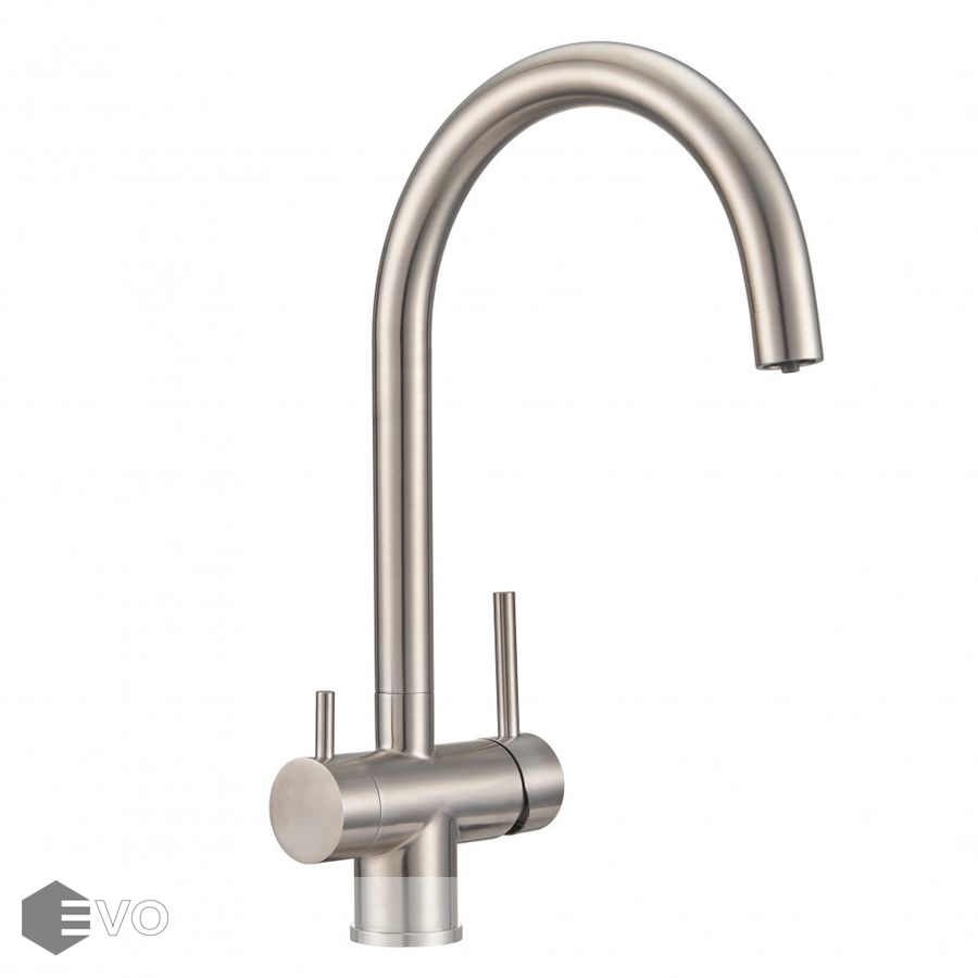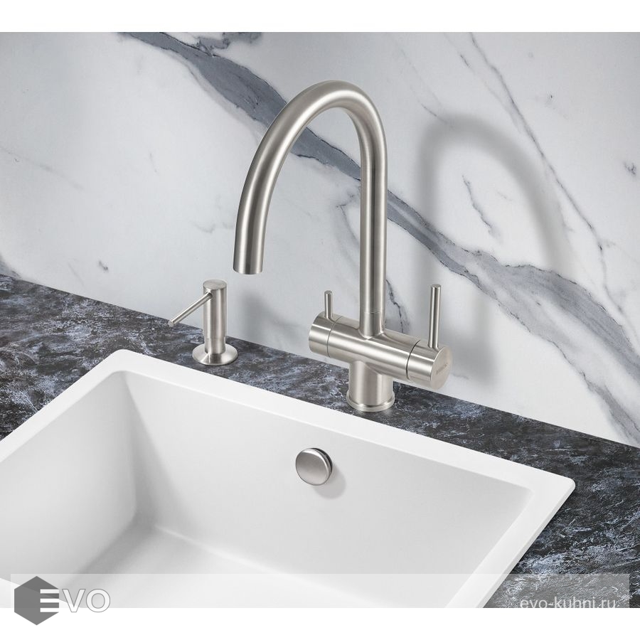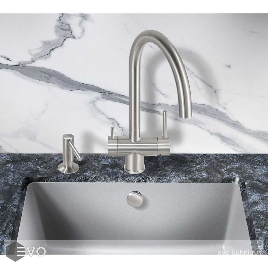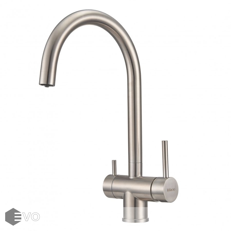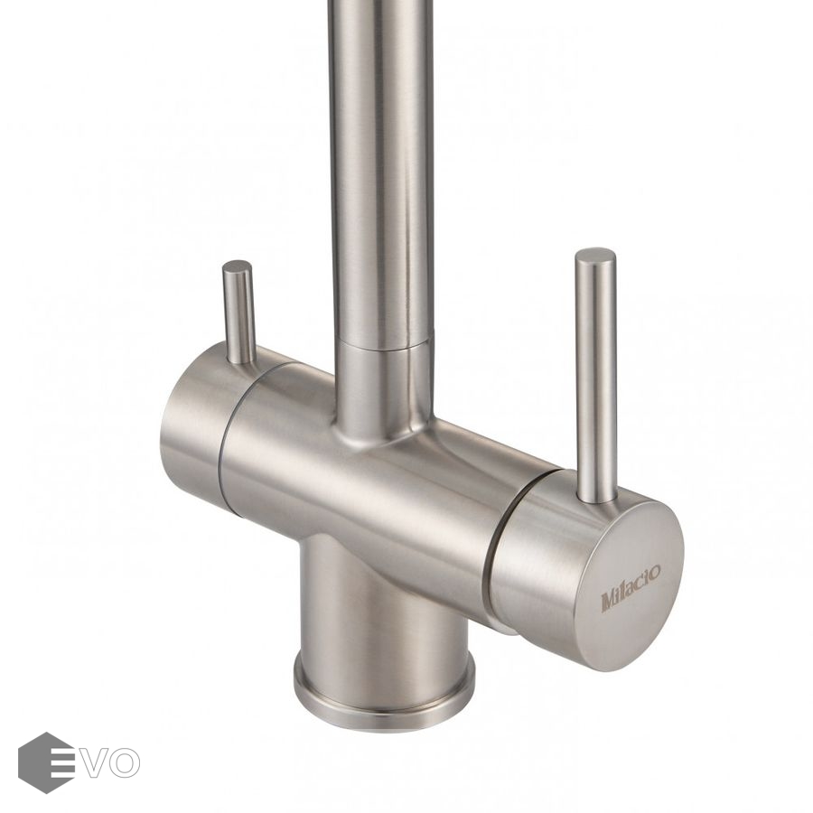 Смеситель для кухонной мойки Milacio Ultra (MCU.554.SS) из нержавеющей стали, с возможностью подключения фильтра — стильное и высокофункциональное решение, которое выгодно подчеркнет все достоинства вашей кухни. Модель выполнена в цвете серебристого металла (сатинированная нержавеющая сталь) и имеет изящный изогнутый кран, благодаря чему станет яркой, привлекающей внимание деталью на кухне и никого не оставит равнодушным.
