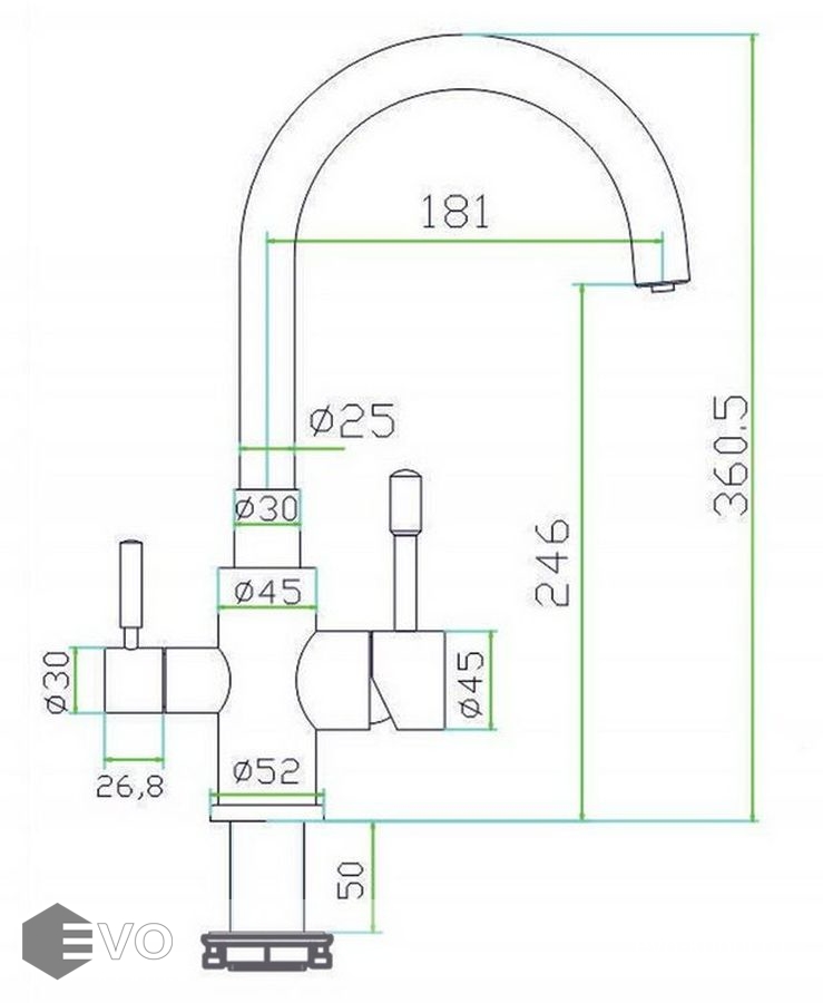 - ВЫСОТА СМЕСИТЕЛЯ: 360,5 мм