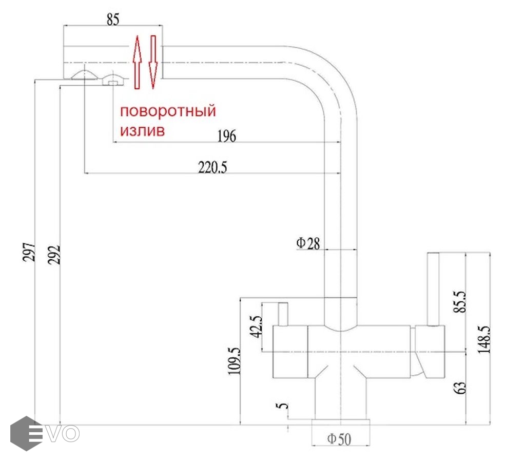 Смеситель совмещает в себе водопроводную и фильтрованную воду, подающуюся по разным каналам. Полностью готов к монтажу на мойку или столешницу толщиной не более 4 см.